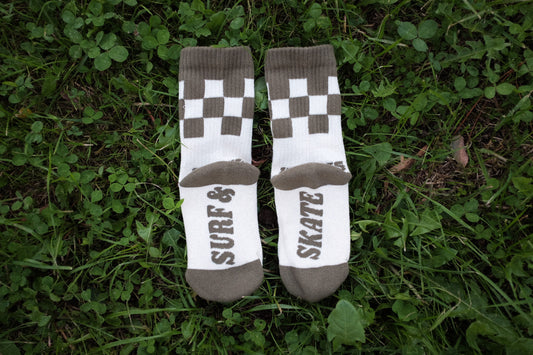 KIDS SURF & SKATE KHAKI CREAM CHECKERBOARD SOCKS UNISEX