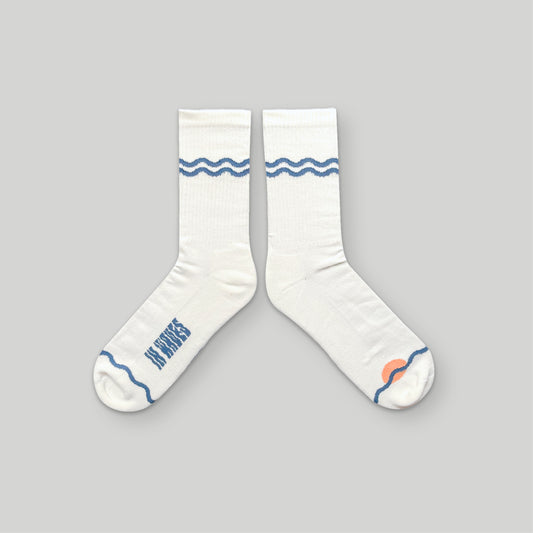 SUNSET WAVES OCEAN BLUE OFF-WHITE SOCKS UNISEX